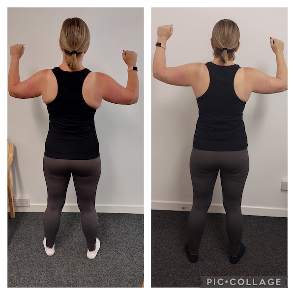 Sarah lost a total of 22.6 inches! Including -4.5 inches off both arms, -2.4 inches off her waist, -7.5 inches off her belly button, -3.5 inches off her hips, and -4.2 inches off both legs. Scales were not the focus of the Challenge however Sarah lost -1.9kg, showing that body shape can change significantly regardless of the reading of the scales. I know that Sarah feels so much better in herself now, which is most important.