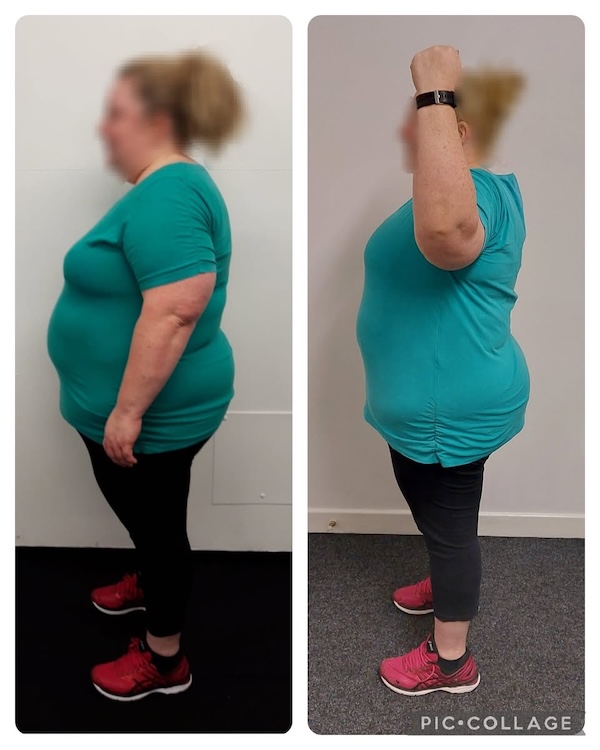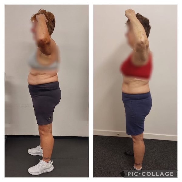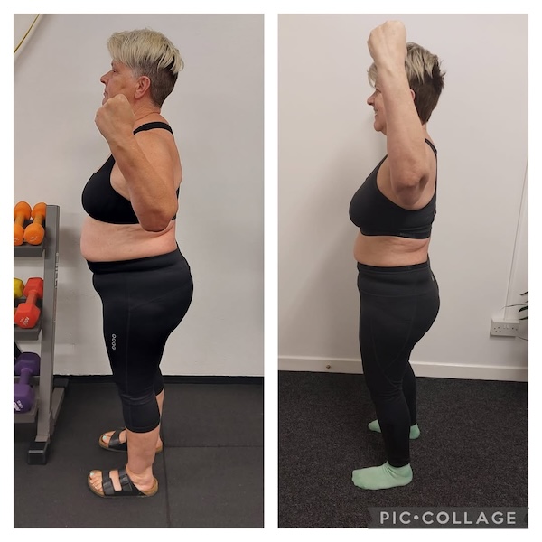 In the time she has trained with me, Karen has had great progressive weeks, and not so great weeks with her health, so we take full advantage of the good, and work with her mobility the best we can. She tells me all the time how as her PT I know exactly what she is capable of, and the mix of moderate strength work coupled with Pilates helps with her aches and pains. To date Karen has lost almost 2 stone in weight, along with 30 inches. Her biggest losses being -6 inches off her belly button, -3 inches off her chest, -4 inches off her hips, -3.5 inches off her waist, -8 inches off both arms, -6 inches off her legs. I have noticed her shape change and she looks so much healthier and happier in herself. She is now down 2 dress sizes from starting her journey😊